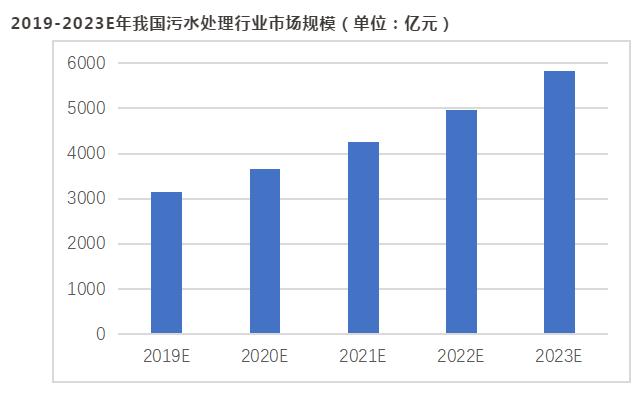 受國家政策支持、各方資本涌入、技術工藝革新等因素驅動,我國污水處理行業將持續快速發展,預計到2023年,我國污水處理行業市場規模將達到5820億元,2019-2023年復合增長率達14.7%。