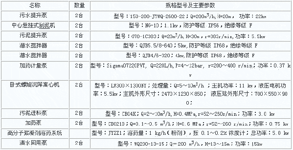 2、主要設備 表2