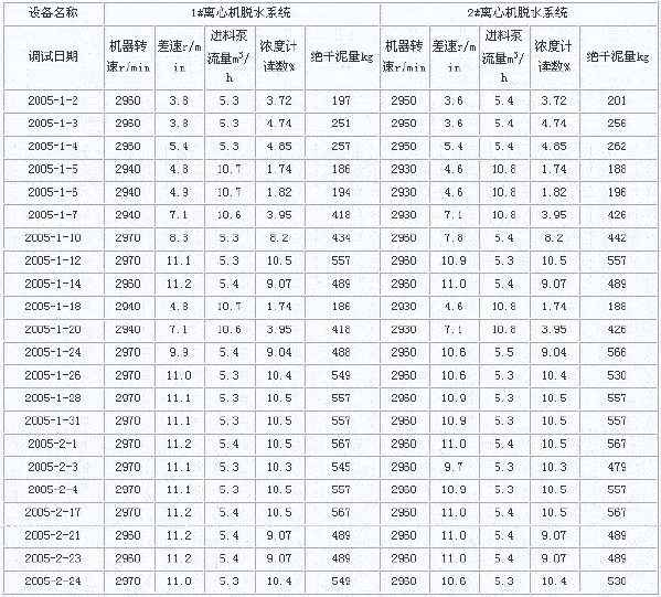 2、離心脫水機記錄數據 表3