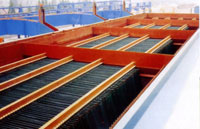 新(xin)型(xing)(xing)斜(xie)板沉(chen)淀池采用(yong)4臺,型(xing)(xing)號(hao)為(wei)XXXB-250,單臺沉(chen)淀面積為(wei)73m2,設計(ji)表面負(fu)荷q=3.3m3/m2·h,設計(ji)出水(shui)懸浮(fu)物(wu)≤100mg/l。新(xin)型(xing)(xing)斜(xie)板沉(chen)淀池無需(xu)螺(luo)旋輸(shu)泥(ni)機(ji)。排泥(ni)采用(yong)重力(li)(li)(li)排泥(ni),壓力(li)(li)(li)水(shui)輔(fu)助(zhu)沖洗。排泥(ni)能(neng)力(li)(li)(li)0.8m3/min(含水(shui)率60~70%),壓力(li)(li)(li)水(shui)壓力(li)(li)(li)0.3MPa。