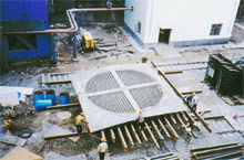 8、采用分室結構,因此可以實現機組滿負荷不停機在線檢修和濾袋更換等操作。花板孔以及整體花板的平整度影響到袋式除塵器的整機性能,因此對花板的加工和拼裝要求很高,我公司花板加工采用激光切割或等離子切割,花板組裝,我們在地面設置專用組裝平臺進行組裝,然后采用整體吊裝的方式進行安裝。