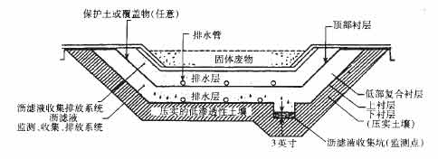 ![]() 圖 危險廢物填埋場雙襯層和瀝濾液收集系統 |