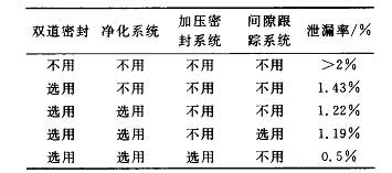 在(zai)結(jie)構(gou)(gou)上可(ke)采用雙道密封結(jie)構(gou)(gou),即公式(3)中N=2,在(zai)任何時(shi)刻都(dou)至少有(you)2道密封片與扇形板或軸向圓弧板構(gou)(gou)成密封副。通(tong)過公式(3)的計算可(ke)得(de),這種結(jie)構(gou)(gou)可(ke)使此處的直接泄漏減少30%左右。但(dan)無限增加N 值是不可(ke)取的,目前一般N 取2。