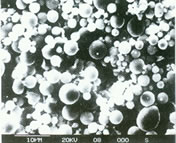 開發出的這種新型多功能空心微珠材料具有優異的物理化學性能,主要表現在:粒度細小(1-10μm)、中空球形、抗壓強度高、耐火度高(>1500℃)、電阻率高、耐腐蝕、熱傳導系數低、熱收縮系數小等方面,其主要化學成分為二氧化硅和三氧化二鋁,主要物相組成為莫來石、石英和矽線石。經表面改性處理后,與高分子材料、涂料等基體材料結合好、相容性好。空心微珠材料的掃描電鏡照片如下。