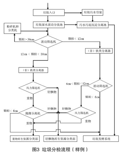 圖3所示的垃圾分檢流程僅作為一個樣例。根據垃圾機械分檢設備的發展和垃圾分檢深度的需要,可以添加相應的分檢設備。