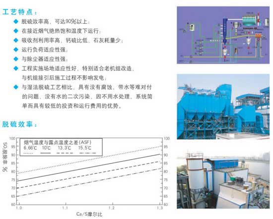 循環懸浮式半干法主要是根據循環流化床理論和噴霧原理,采用懸浮方式,使吸收劑在吸收塔內懸浮、反復循環,與煙氣中的SO2充分接觸、反應來實現脫硫的一種方法。