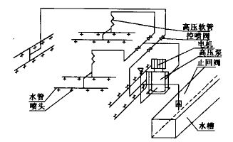 噴淋系統裝置組成:由水系統和控制系統組成。水系統由水源、水管路、閥門、過濾器和除塵噴頭組成;控制系統由電磁閥、傳感器、控制器等構成。