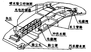 3.4 通過頭部壓塵后,粉塵濃度大大降低,煤倉間的除塵用現有的布袋式除塵器即可滿足除塵要求。配合水沖洗地面,煤倉間位置較高,可選用管道泵增壓,以滿足供水需要。