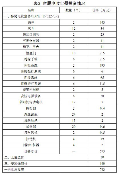 (2)維護費用:電收塵器基本為鋼材,年維護費用低,約為18萬元/年。