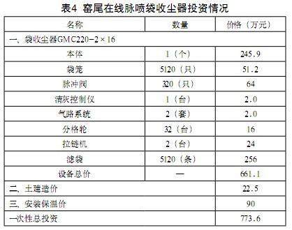 (3)當排放濃度要求≤50mg/Nm3 時,窯尾在線脈噴袋收塵器比電收塵器設備一次性投資高4.12%,運行費用高30.41%。