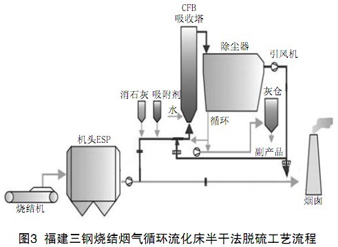 福建三鋼燒結煙氣循環流化床半干法脫硫工藝流程見圖3。