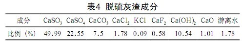 該系統運行以來一直比較穩定,目前最大的不足是脫硫灰渣的使用范圍有限,僅用于作水泥沙漿、做改良瀝青和內墻墻面涂料等,而且使用數量有限。企業無法直接從脫硫產物的綜合利用中得到效益,以降低脫硫運行成本。脫硫灰渣成分見表4。