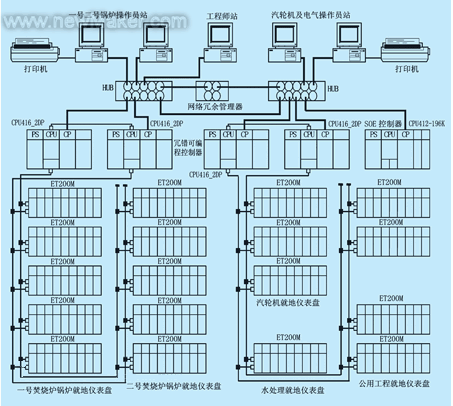 本控制系統由西門子400系列的CPU416-2組成雙機熱備,進行數據冗余,300系列分布式I/O組成雙冗余的DP總線,是性價比極高的集散控制系統,在今后的各種環保電廠主機控制及大型發電機組的輔機控制領域中具有極大的推廣價值。