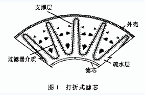 打折式濾芯(見圖1)由于濾芯是外進里出,除了過濾比很低外,其不合理的結構,導致其流量分配不均,濾芯壽命短。