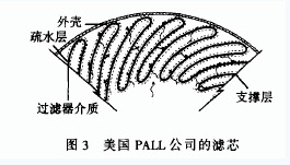 UHF濾芯是PALL公司近年研發的專利產品(見圖3),允許高流量的介質通過濾材,具有高效、低壓損和長壽命等優點。濾芯的里進外出結構使得容易更換濾芯,同時保持污染物在濾芯的內部。濾芯的無金屬結構使得它可以進行完全燃燒、壓扁等環保處理。濾芯的B值達3000。濾殼中可裝多支濾芯,可以使用很廣的流量范圍,無論是啟動還是連續運行時都可使用。濾芯經久耐用,還可以最少地、最經濟地配置過濾器。
