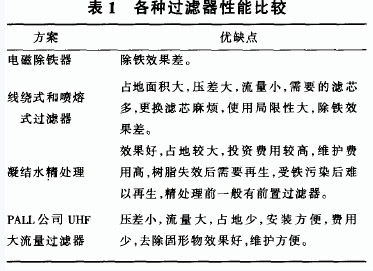 幾種傳統的過濾方法和PALL公司大流量過濾器性能比較列于表1。