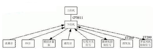 系(xi)統(tong)上位(wei)(wei)機(ji)(ji)采用(yong)(yong)工業用(yong)(yong)計(ji)算(suan)機(ji)(ji),配置(zhi)為PⅢ800、256M內(nei)存、40G硬盤、21顯(xian)示(shi)器,運(yun)行中(zhong)文(wen)Windows 2000操作(zuo)系(xi)統(tong),組(zu)態(tai)軟件為WinCC5.0SP2中(zhong)文(wen)版,通(tong)過CP5611通(tong)訊(xun)卡(MPI/PROFIBUS)與下位(wei)(wei)機(ji)(ji)通(tong)訊(xun);下位(wei)(wei)機(ji)(ji)采用(yong)(yong)S7-300系(xi)列中(zhong)的(de)CPU318-2DP,共21塊(kuai)I/O卡。由于(yu)整個處理工藝的(de)占(zhan)地面積比較大(da)(da),控制(zhi)(zhi)回路(lu)(lu)多,為了避免鋪(pu)設大(da)(da)量的(de)控制(zhi)(zhi)線路(lu)(lu),所(suo)以采用(yong)(yong)西門子的(de)ET200模塊(kuai)將一部分I/O放置(zhi)在距離中(zhong)心控制(zhi)(zhi)室較遠而控制(zhi)(zhi)點又比較集中(zhong)的(de)地方,利用(yong)(yong)西門子的(de)PROFIBUS-DP通(tong)訊(xun)協議(yi)形成遠程I/O。控制(zhi)(zhi)系(xi)統(tong)結(jie)構如圖(tu)2所(suo)示(shi)。