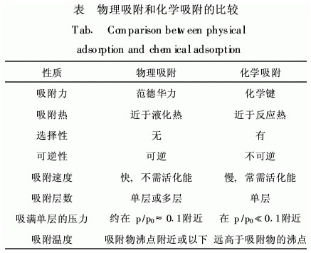 根據X射線分析,活性炭的結構由許多石墨 型層狀結構的微晶不規則集合而成。微晶的各層是 以六個炭所組成的圓環為母體,但是有些部位上可 以看到,炭原子之間的共價鍵已經斷裂,特別是在 層的邊緣部位還有許多非結晶結構,這樣的非結晶部位容易進行化學反應。微晶按三維空間連接時, 在微晶之間所形成的空隙,是活性炭具有微孔結構 的基礎。這樣,活性炭的多孔性使活性炭具有極大 的內表面積,而非結晶部位更加強了他對外界物質 的吸附作用[1]。PAC吸附分物理吸附和化學吸附 兩種,物理吸附和化學吸附的比較見下表。