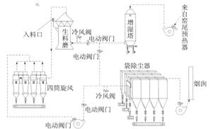 ![]() 圖1 窯磨一體化廢氣除塵系統工藝流程 |