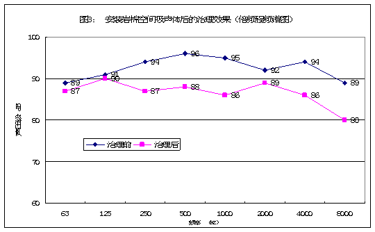 由聲(sheng)(sheng)學原理可知,若噪(zao)(zao)聲(sheng)(sheng)降低了解情況了3分(fen)貝(bei),相當(dang)于聲(sheng)(sheng)能減(jian)少一半,若噪(zao)(zao)聲(sheng)(sheng)降低10分(fen)貝(bei),則(ze)相當(dang)于聲(sheng)(sheng)能減(jian)少90%,而噪(zao)(zao)聲(sheng)(sheng)響(xiang)度降低50%。所以(yi)雖(sui)然從降噪(zao)(zao)量上看,只有6個分(fen)貝(bei),但是,噪(zao)(zao)聲(sheng)(sheng)的能量削減(jian)了70%以(yi)上,在這一聲(sheng)(sheng)環境內的人體感(gan)觀質(zhi)量得到了大幅度改善。