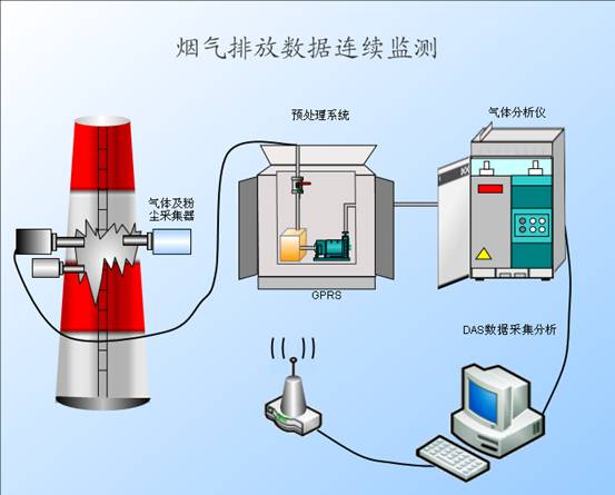 整套系統包括探頭取樣系統、樣氣預處理系統、校準系統、PLC控制系統,氣體分析儀,DAS系統(數據采集和分析),GPRS遠程通訊系統。系統拓撲圖如下: