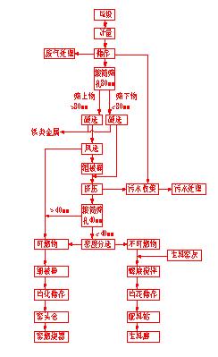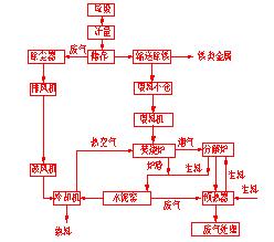 該技術是將垃圾直接送到水泥廠,在水泥廠建設預處理車間,對生活垃圾篩分、除鐵、風選、破碎、除去不可燃的無機物、擠壓出水分等,將可燃部分選出。對選出的可燃部分再進行破碎、烘干,加工成能夠用特制噴煤管噴入水泥窯燃燒的燃料。除去的不可燃的無機物作為生產水泥的原料,在磨制水泥生料時搭配進去,成為替代原料。該技術工藝流程如圖。