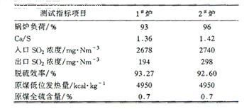 系統經半年多運行表明其具有良好的性能,主要表現在以下幾個方面:(1)投資省、占地面積小。由于強化了氣液固相間傳質,使處理單位體積煙氣的設備體積大大降低,設備占地面積小,投資及運行費用低。經估算,按原煤含硫量0.7%計,正常鍋爐負荷下需純度80%石灰量為130kg/h。 (2)脫硫效率高。在已運行的兩臺75t煤粉鍋爐煙氣脫硫系統中,經廣州市環境檢測中心站測試,主要性能指標如表1所示。