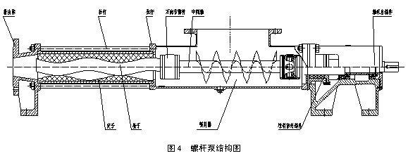 泵應采用帶有喂料裝置的結構,如圖4所示。一般不需要加破橋裝置。但泵的定、轉子及軸封應充分考慮耐磨要求。