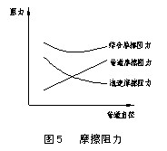 (2)管道直徑要適當。一般按最大流量時的流速0.08~0.12m/s選擇管道直徑。管道直徑過小,流速過大,流速引起的阻力增加,管道直徑過大,內壁圓周面積增加,引起管壁阻力增加。只有選擇合適的管徑才能有最小的摩擦阻力(如圖5)。
