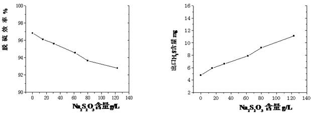 圖一:不同Na2S2O3含量下的脫硫(liu)效率和(he)出(chu)口H2S含量