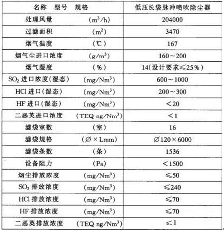 需要指出的是在本系統中,布袋除塵器不僅僅作為一個專用除塵設備,而且吸附在濾袋上的粉餅層還可與煙氣中的HCl、SO2進一步發生反應,從而提高有害氣體的去除率,減少石灰的消耗量。