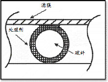 高溫熱融覆膜技術是先對玻纖進行表面化學處理,再進行高溫熱融覆膜,圖2是覆膜原理圖。