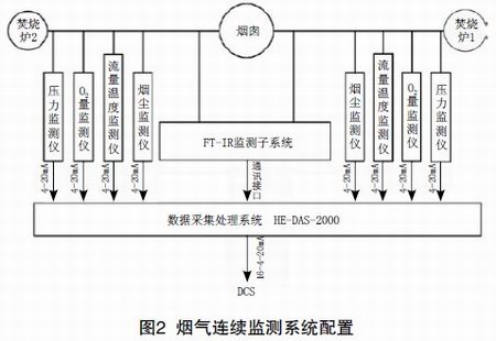 (2)煙氣處理前,對煙氣中的HCl、SO2、NOX、CO、HF、H2O氣體進行監測,并把濃度信號提供給DCS系統,作為過程控制的參數,參與控制噴霧塔加注石灰漿的數量。