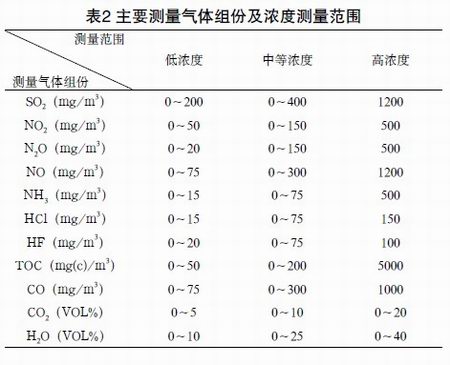 5.2主要測量組份及測量范圍(見表2)