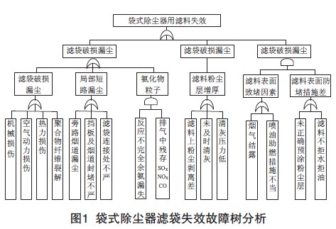 關鍵詞:電廠煙塵,袋(dai)式除塵器,濾袋(dai)失效,故(gu)障樹(shu)分析