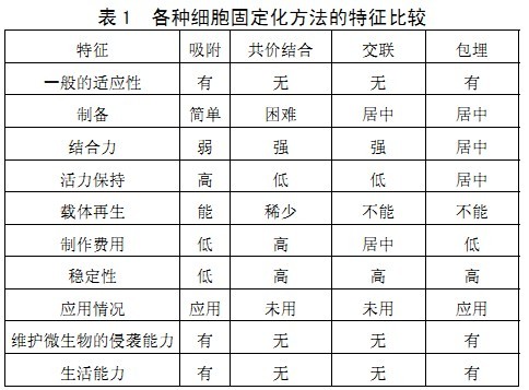 細胞固定化方法的分類就有很多種,目前國內外還沒有統一的分類標準。如成慶利等人根據有無外加載體,將細胞固定化分為有載體固定化和無載體固定化,崔建濤等對有載體固定化細胞和無載體固定化細胞的研究應用進一步作了詳細敘述。在細胞固定化方法上基本上與固定化酶技術相似,常用的細胞固定方法有吸附法、包埋法、交聯法、共價結合法、絮凝法以及多種固定化法聯用等,其中以吸附法和包埋法最為常見。