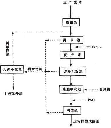 硫(liu)(liu)(liu)化(hua)物(wu)(wu)(wu)的(de)(de)去除有兩個問(wen)題: ①由(you)于調節池(chi)出水不易(yi)均勻, 加(jia)(jia)(jia)(jia)FeSO4 的(de)(de)量(liang)(liang)(liang)(liang)也就隨著變化(hua), 造成(cheng)制(zhi)革廢(fei)水的(de)(de)加(jia)(jia)(jia)(jia)藥量(liang)(liang)(liang)(liang)不容(rong)易(yi)控制(zhi)。②加(jia)(jia)(jia)(jia)FeSO4 后, 特別是(shi)FeSO4的(de)(de)用(yong)量(liang)(liang)(liang)(liang)在100 mg/L 以(yi)上(shang)時, 出水的(de)(de)顏色(se)(se)呈黑(hei)色(se)(se), 產(chan)生大量(liang)(liang)(liang)(liang)的(de)(de)黑(hei)色(se)(se)污泥(ni), 且不容(rong)易(yi)沉(chen)(chen)(chen)淀(dian)(dian)。針對以(yi)上(shang)情(qing)況(kuang)(kuang), 首(shou)先在化(hua)驗(yan)(yan)室(shi)燒(shao)杯(bei)里做(zuo)加(jia)(jia)(jia)(jia)藥反(fan)(fan)(fan)應(ying)沉(chen)(chen)(chen)淀(dian)(dian)實驗(yan)(yan), 觀(guan)察沉(chen)(chen)(chen)淀(dian)(dian)情(qing)況(kuang)(kuang)以(yi)確定(ding)加(jia)(jia)(jia)(jia)藥量(liang)(liang)(liang)(liang)。FeSO4 加(jia)(jia)(jia)(jia)藥量(liang)(liang)(liang)(liang)的(de)(de)確定(ding): 首(shou)先取加(jia)(jia)(jia)(jia)FeSO4反(fan)(fan)(fan)應(ying)后的(de)(de)污水上(shang)清液, 再(zai)用(yong)少量(liang)(liang)(liang)(liang)的(de)(de)FeSO4 與(yu)之(zhi)反(fan)(fan)(fan)應(ying), 若無黑(hei)色(se)(se)沉(chen)(chen)(chen)淀(dian)(dian)物(wu)(wu)(wu), 則(ze)硫(liu)(liu)(liu)化(hua)物(wu)(wu)(wu)的(de)(de)去除較為徹底, 反(fan)(fan)(fan)之(zhi)硫(liu)(liu)(liu)化(hua)物(wu)(wu)(wu)沒(mei)有被大量(liang)(liang)(liang)(liang)去除。在實際中(zhong)發(fa)現(xian), 很難做(zuo)到完(wan)全去除硫(liu)(liu)(liu)化(hua)物(wu)(wu)(wu)。當(dang)然也沒(mei)有必要完(wan)全去除, 因為只要硫(liu)(liu)(liu)化(hua)物(wu)(wu)(wu)的(de)(de)濃(nong)度低(di)于40 mg/L[1], 微生物(wu)(wu)(wu)生長就能正常。另(ling)外(wai), 針對反(fan)(fan)(fan)應(ying)生成(cheng)的(de)(de)黑(hei)色(se)(se)沉(chen)(chen)(chen)淀(dian)(dian)物(wu)(wu)(wu)較難沉(chen)(chen)(chen)淀(dian)(dian)的(de)(de)情(qing)況(kuang)(kuang), 在實驗(yan)(yan)室(shi)中(zhong)發(fa)現(xian)加(jia)(jia)(jia)(jia)PAC 能加(jia)(jia)(jia)(jia)速沉(chen)(chen)(chen)淀(dian)(dian), 并(bing)且PAC 對染(ran)色(se)(se)廢(fei)水有較好的(de)(de)脫(tuo)色(se)(se)效果。故決定(ding)在反(fan)(fan)(fan)應(ying)罐前重新開一個注入(ru)口, 用(yong)加(jia)(jia)(jia)(jia)藥泵加(jia)(jia)(jia)(jia)PAC, 轉子(zi)流(liu)量(liang)(liang)(liang)(liang)計(ji)控制(zhi)流(liu)量(liang)(liang)(liang)(liang)。