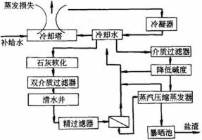 離子交換法降低堿度是另一部分冷卻水的處理系統,它也是通過介質過濾器進入弱酸性離子交換樹脂降低堿度,脫堿水返回再用,離子交換再生廢液進入蒸發器濃縮處理以回收鹽分。