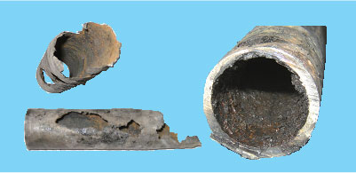 處理前:微生物黏泥和腐蝕穿管嚴重問題 |