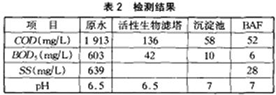 表2是出水水質穩定時(調試后2個月)的檢測結果。