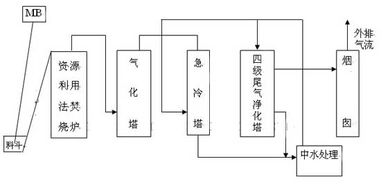 由于焚燒不用柴油、重油、天然氣,不但節約了能源,同時還將可燃氣體用在爐后的氧化塔中焚燒處理煙氣,從而使煙氣中的有毒有害物質在高溫條件下,得到徹底的氣化,高溫氧化后的煙氣最后經過急冷換熱和尾氣凈化后優于國標排放,排入大氣中。