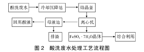 目前,回收法主要有真空濃縮冷凍結晶法(減壓蒸發冷凍結晶法)、自然結晶-擴散滲析法、聚合硫酸鐵法、加鐵屑生產硫酸亞鐵和加酸冷凍結晶法(無蒸發冷凍結晶法)等5種方法。處理量較大的企業通常采用前4種方法,酸洗廢水量少及FeSO4濃度高的則應選擇工藝流程簡單、投資較少、回用率較高的加酸冷凍結晶法。