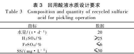 經過上述處理系統后,回用的酸液水質設計要求見表3,可以達到鋼材酸洗用酸的基本需求,在實現回用生產的同時,實現酸洗廢水的零排放。