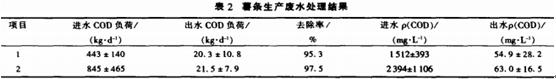 挪威一薯條廠廢水處理采用MBBR法進行好氧處理。小部分廢水先經厭氧預處理,大部分廢水沒有預處理。MBBR由3個串聯的反應器組成。生物處理后的廢水在進入最終沉淀池之前進行加藥混凝。載體的比表面積為450m2/m3,,填充率為50%。測定結果見表2。
