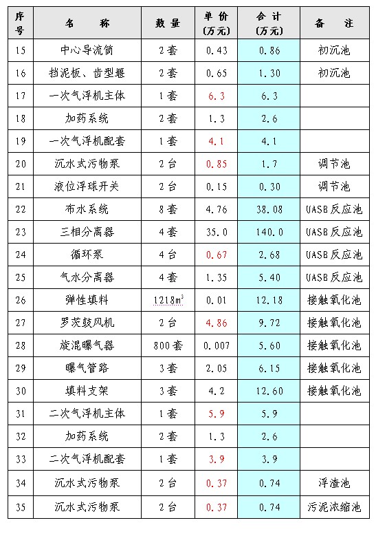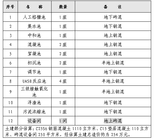 本方案土建投資、設備投資、總投資估算表分別見表1、表2、表3。