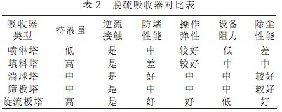 2 脫硫除塵工藝及脫硫吸收器比較選擇