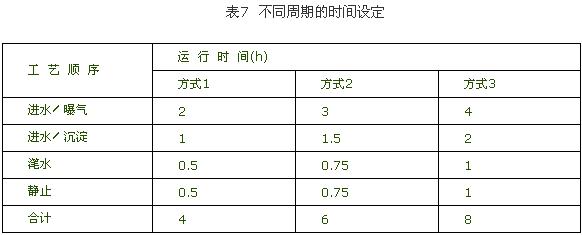 3.CASS池運行周期的設定。CASS工藝的操作周期根據污水水質的不同而設定,因此具有很強的抗沖擊性和廣泛的適用性。詳見表7。