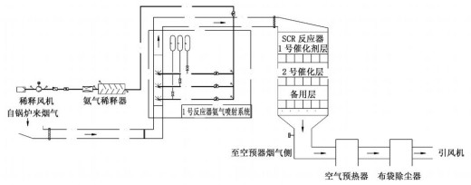圖 1 高井熱電廠 SCR脫硝系統工藝流程 |