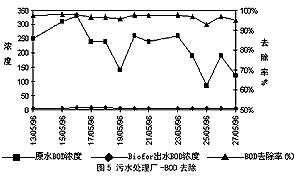 在第二階段(1996年8月~1997年1月),出水水質仍能達到排放標準,在這個階段,分析了每個處理工藝的較多水樣,這可以評價每個工藝的效率。
