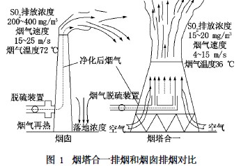 從(cong)圖1可(ke)以看出煙塔(ta)合(he)一技術與傳(chuan)統煙囪排(pai)煙有較(jiao)大的不同。